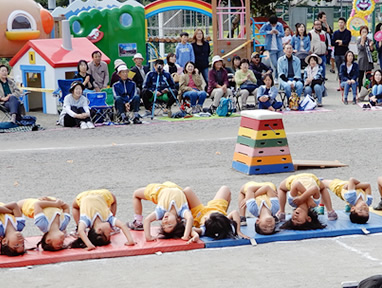 幼いうちから正しく体を動かすことを学ぶのは大切なことです。運動会でも体操教室で学んだ成果を披露します。