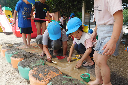 TOP > 白石保育園での年間行事 白石保育園の年間行事 【白石保育園の年間行事 】 1. 年間行事TOP 2. 入園式_4月 3. お花見_年4回 4. カレンダー配り_年4回 5. 砂場手入れ_年2回 6. お花植え_4月~ 7. こいのぼり_5月 8. 母の日_5月 9. 親子バス旅行_5月 10. タマネギ収穫_5月 11. 郡馬ちゃん・ポチっとくん_5月 12. どろんこ遊び_6月 13. 保育参観_年2回 14. 動物見学_複数回 15. じゃが芋掘り_6月 16. プール開き_7月 17. 流しそうめん_7月 18. ネギ収穫_7月 19. たなばた_7月 20. トマト狩り_7月 21. お泊り会_7月 22. プランター野菜収穫_7月~ 23. 納涼祭_8月 24. 交通安全訓練_9月 25. 敬老の集い_9月 26. 地域老人会と交流_9月 27. チャレンジウィーク_9月 28. 運動会_10月 29. 親子バス旅行_10月 30. 施設訪問_10月 31. ハロウィン_10月 32. 遊具点検_11月 33. マラソン開始_11月 34. 七五三祝_11月 35. 落葉拾い_11月 36.お楽しみ会_12月 37.芝スキー_12月 38. クリスマス_12月 39. 餅つき_12月 40. 初詣で_1月 41. 凧あげ なわとび_1月 42. 白鳥見学_1月 43. まめまき_2月 44. 一日入園_2月 45. ひなまつり_3月 46. 卒園記念品作り_3月 47. お別れ会_3月 48. 卒園式_3月 49. 飯玉神社奉納_4月頭 12. どろんこ遊び 前へ 年間行事TOP 次へ 6、7月:当園では毎年6月からどろんこ遊びをし、7月からプールに入ります。どろんこ遊びは梅雨の晴れ間に行うので毎日はできませんが、梅雨の合間の天気のよい日を楽しみにしています。なんと言ってもみんなどろんこが大好き!服を汚しても叱られません♪思う存分遊びます。 前へ 年間行事TOP 次へ © 藤岡市 白石保育園 All rights reserved. TOPへ ▲