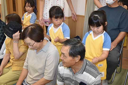 TOP > 白石保育園での年間行事 白石保育園の年間行事 【白石保育園の年間行事 】 1. 年間行事TOP 2. 入園式_4月 3. お花見_年4回 4. カレンダー配り_年4回 5. 砂場手入れ_年2回 6. お花植え_4月~ 7. こいのぼり_5月 8. 母の日_5月 9. 親子バス旅行_5月 10. タマネギ収穫_5月 11. 郡馬ちゃん・ポチっとくん_5月 12. どろんこ遊び_6月 13. 保育参観_年2回 14. 動物見学_複数回 15. じゃが芋掘り_6月 16. プール開き_7月 17. 流しそうめん_7月 18. ネギ収穫_7月 19. たなばた_7月 20. トマト狩り_7月 21. お泊り会_7月 22. プランター野菜収穫_7月~ 23. 納涼祭_8月 24. 交通安全訓練_9月 25. 敬老の集い_9月 26. 地域老人会と交流_9月 27. チャレンジウィーク_9月 28. 運動会_10月 29. 親子バス旅行_10月 30. 施設訪問_10月 31. ハロウィン_10月 32. 遊具点検_11月 33. マラソン開始_11月 34. 七五三祝_11月 35. 落葉拾い_11月 36.お楽しみ会_12月 37.芝スキー_12月 38. クリスマス_12月 39. 餅つき_12月 40. 初詣で_1月 41. 凧あげ なわとび_1月 42. 白鳥見学_1月 43. まめまき_2月 44. 一日入園_2月 45. ひなまつり_3月 46. 卒園記念品作り_3月 47. お別れ会_3月 48. 卒園式_3月 49. 飯玉神社奉納_4月頭 25. 敬老の集い 前へ 年間行事TOP 次へ 9月:子ども達のおじいちゃんとおばあちゃんを招待し、敬老の日の集いを行います。この日のために歌等を事前に練習して披露します。肩たたきをしたり、日頃の感謝の言葉を伝えたりして過ごします。 前へ 年間行事TOP 次へ © 藤岡市 白石保育園 All rights reserved. TOPへ ▲